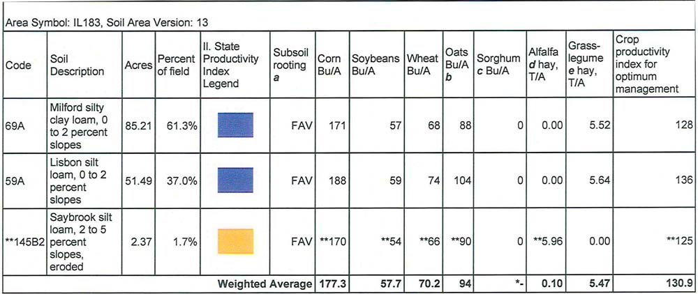 - Primary soils: Milford silty clay loam and Lisbon silt loam