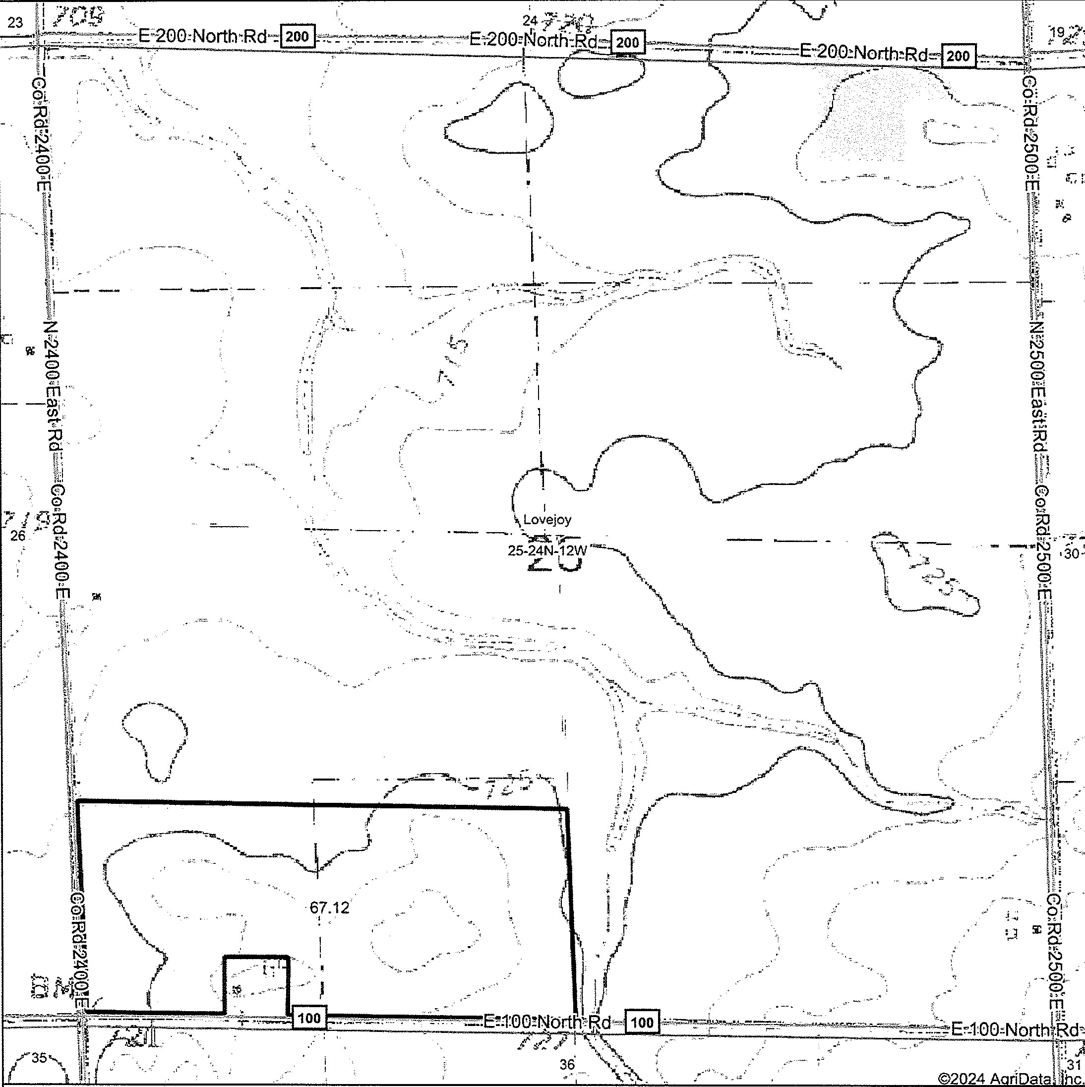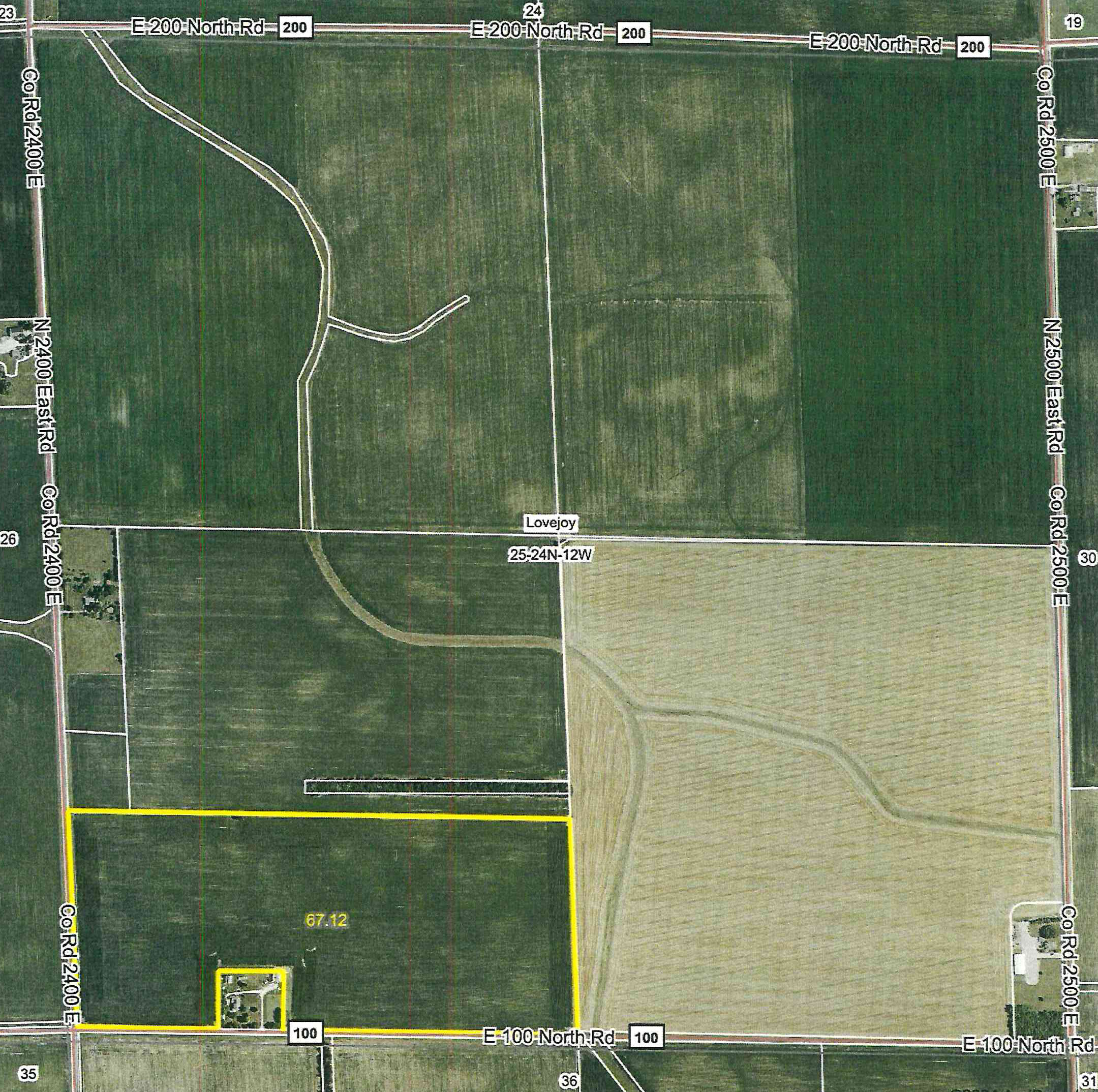 - Easy access Township Road 2400 E along west side and Township Road 100 N across south side